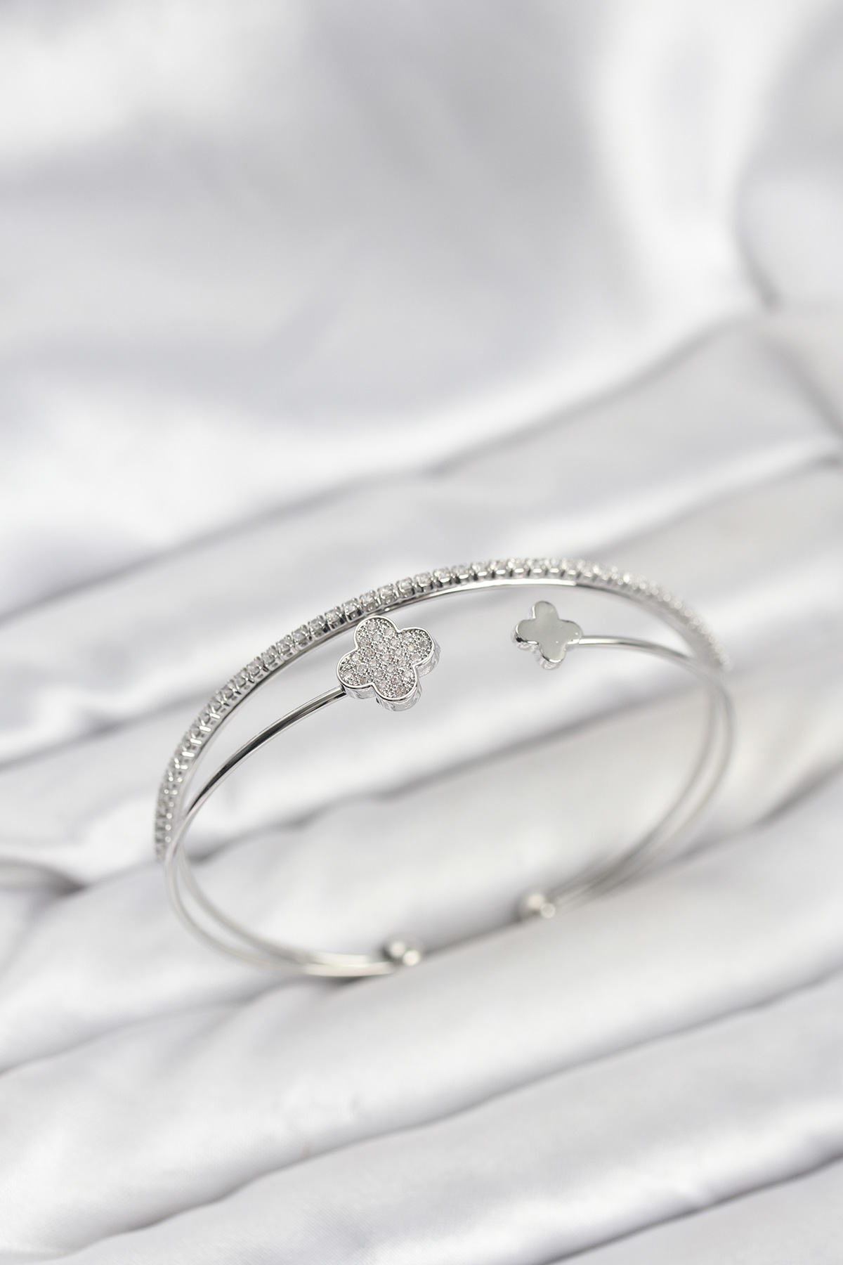Yonca Model Pirinç Gümüş Renk Kadın Bileklik - TJ-BB8260