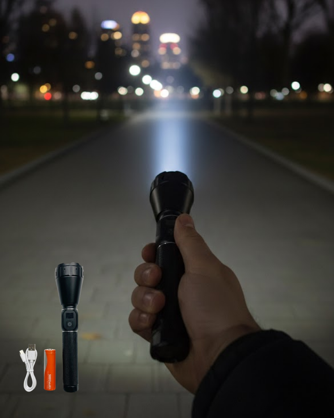 Bu yüksek performanslı şarjlı el feneri, güçlü aydınlatma ihtiyacı olan kullanıcılar için tasarlanmış profesyonel bir çözümdür. 60W güç kapasitesi ve 6000 lümen seviyesine kadar ulaşabilen yoğun ışık çıkışı sayesinde karanlık ortamlarda maksimum görüş sağlar. Geniş alan aydınlatmasında, uzun mesafeli odak gerektiren durumlarda ve acil anlarda güvenilir bir ışık kaynağı sunar.