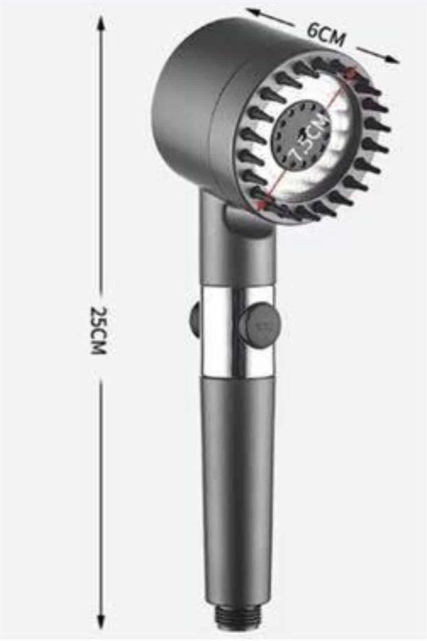 Krom kaplama malzemesiyle üretilmiş olan bu duş başlığı, hem estetik görünümüyle banyonuza şıklık katarken hem de uzun ömürlü ve dayanıklı bir kullanım sunar. Paslanmaya karşı dirençli yapısı sayesinde ilk günkü parlaklığını uzun süre korur ve günlük kullanımda yüksek performans sağlar. Üç farklı masaj modu sayesinde duş keyfinizi bambaşka bir seviyeye taşıyan bu ürün; rahatlatıcı, canlandırıcı ve derin doku masajı seçenekleriyle kişisel konforunuzu ön plana çıkarır. Günün stresini üzerinizden atmak veya güne zinde başlamak için ihtiyacınıza göre kolayca modlar arasında geçiş yapabilirsiniz.Kullanıcı dostu tasarımı sayesinde kurulumu oldukça basittir; ekstra bir ekipmana gerek kalmadan dakikalar içinde monte edilebilir. Ergonomik tutuşu ve su tasarrufu sağlayan yapısıyla hem çevre dostu hem de ekonomik bir kullanım sunar. Pratik kullanımı sayesinde her banyoya kolaylıkla entegre edilebilen bu duş başlığı, fonksiyonel ve şık bir banyo aksesuarı arayanlar için ideal bir seçimdir.