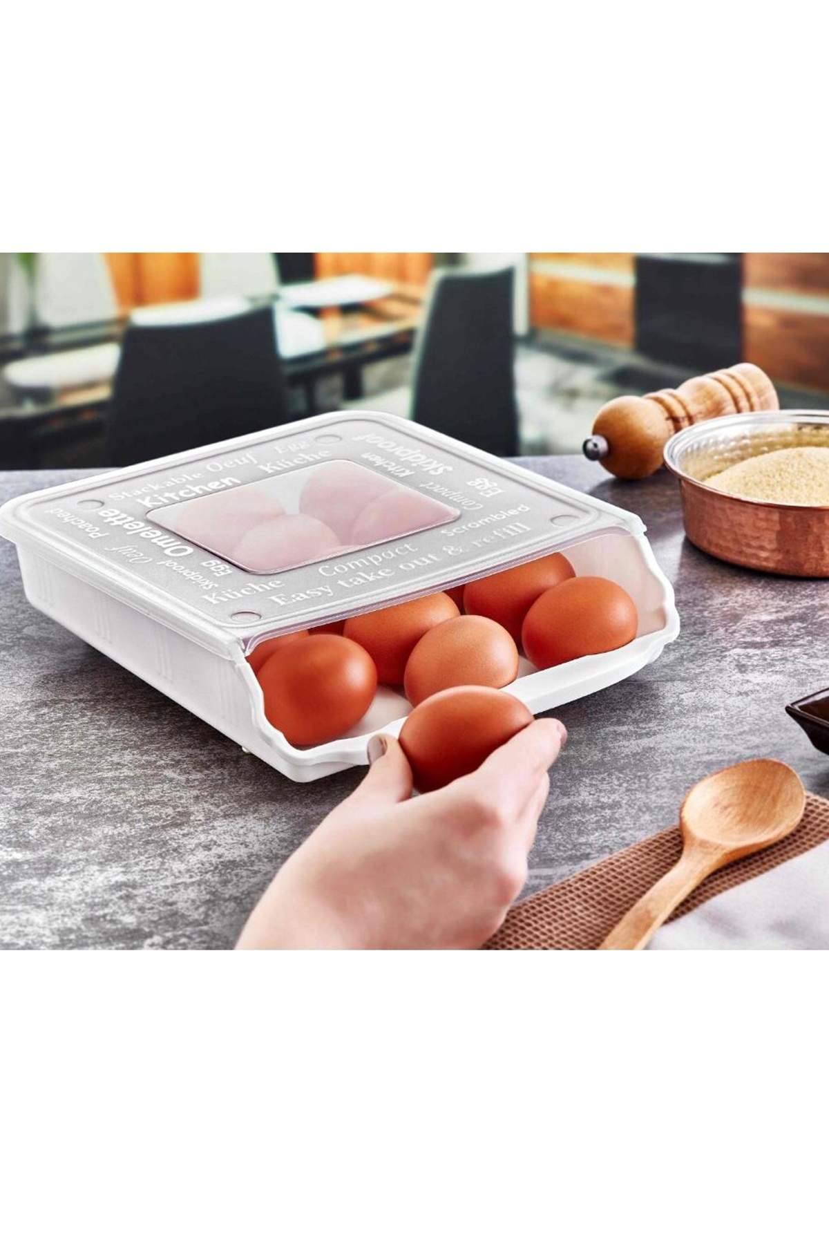 Kapağı açmadan siz yumurtayı aldıkça ön tarafa otomatik kayarak gelir.