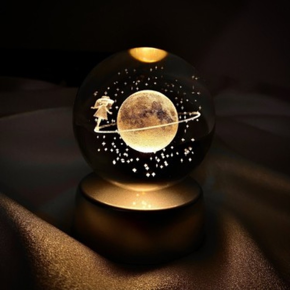Yürüyen Kız Temalı Satürn Işıklı Cam Küre Cap 6 Cm Kod 57