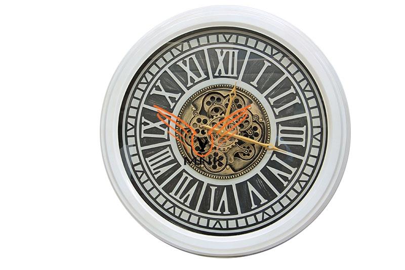 Yuvarlak Roma Rakamlı Beyazoksit Çarklı Metal Duvar Saati