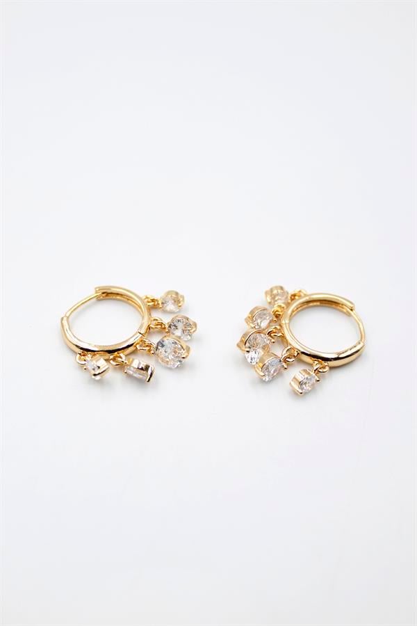 Yuvarlak Taşlı Shakira Küpe - Altın