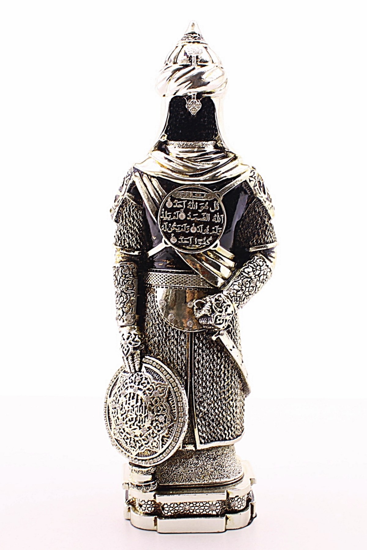 Zırhlı Cevşen Ayetli Asker Gümüş Biblo 3 Boyutlu Büyük Boy 32 cm-017