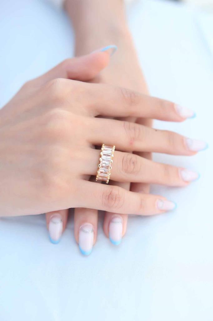 Zirkon Taşlı Baget Gold Renk Kadın Yüzük - TJ-BYK2342