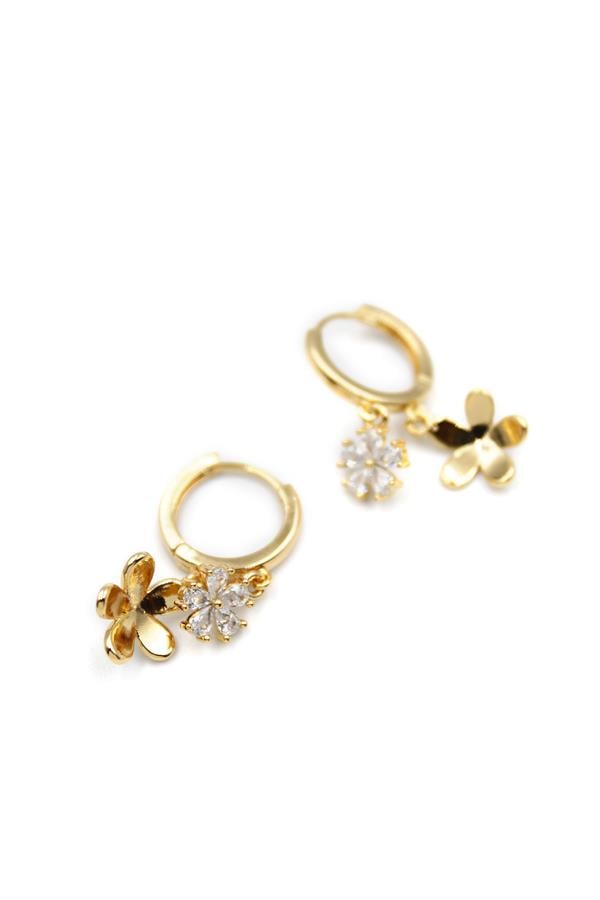 Zirkon Taşlı Çiçek Küpe - Altın