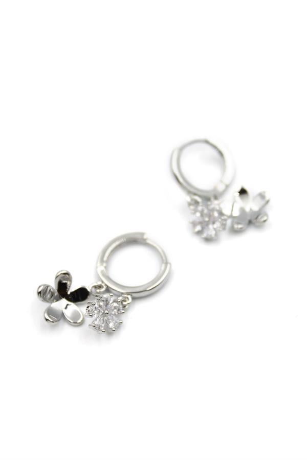 Zirkon Taşlı Çiçek Küpe - Gümüş