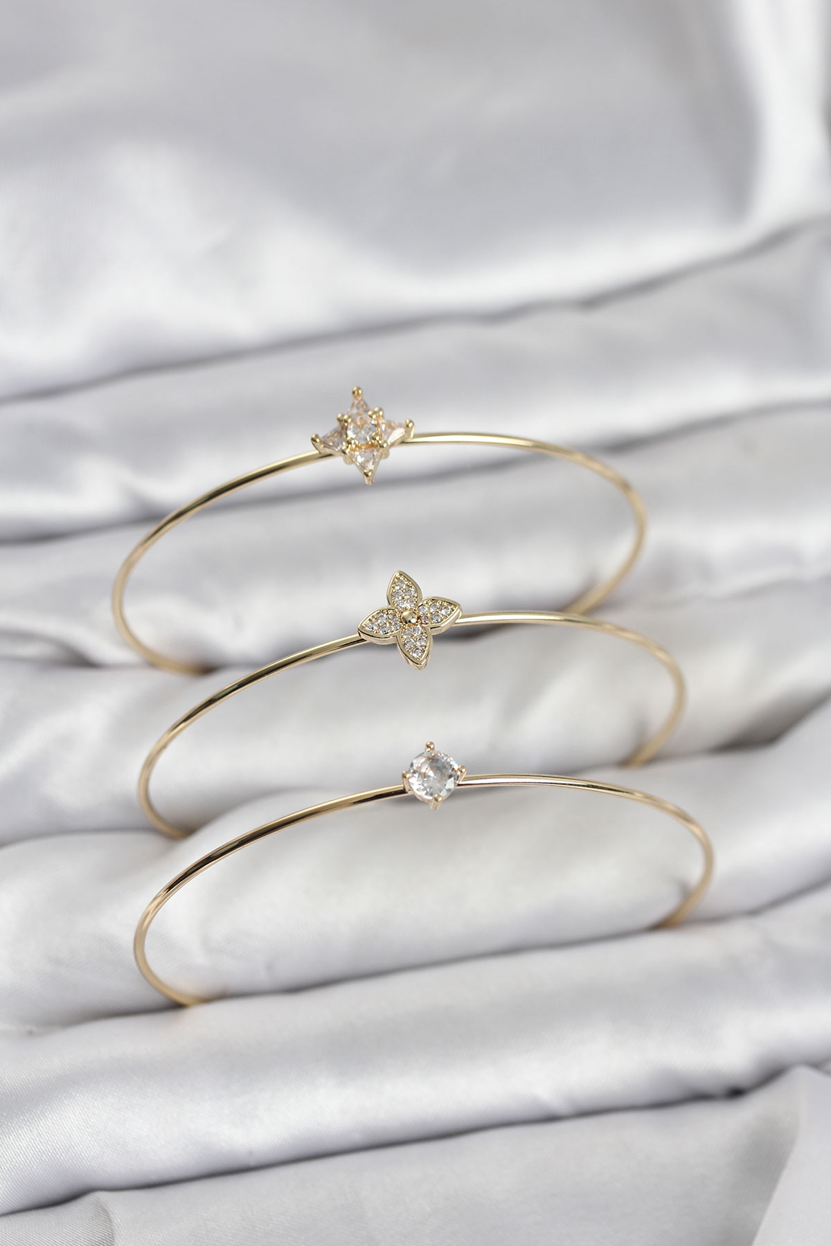 Zirkon Taşlı Gold Renk Yonca Model 3'lü Kadın Bileklik Kombini - TJ-BB8349