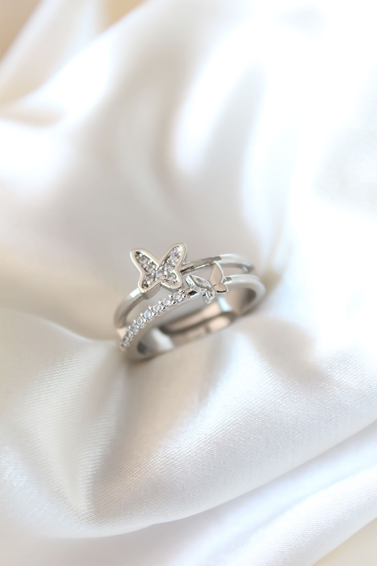 Zirkon Taşlı Gümüş Kaplama Kelebekli Kadın Yüzük - TJ-BYK2320