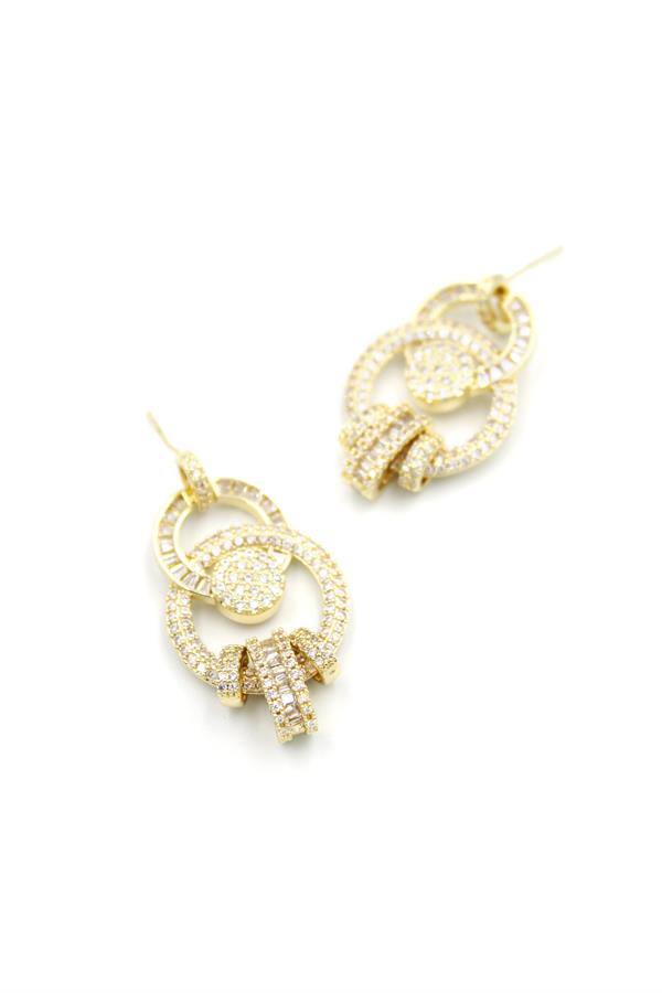 Zirkon Taşlı Halkalı Küpe - Altın