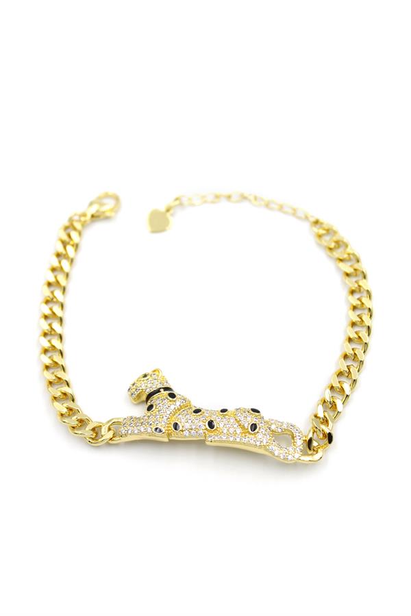 Zirkon Taşlı Leopar Bileklik - Altın