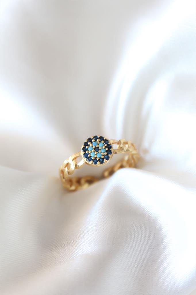 Zirkon Taşlı Nazarlı Altın Kaplama Kadın Yüzük - TJ-BYK2319
