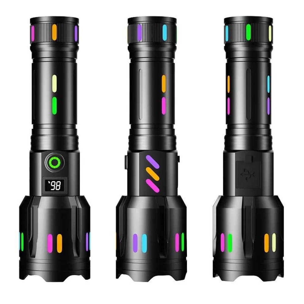 Tek Düğme Batarya: 1*18650/1*26650/3*AAA Işık Modu: 5 Mod: Güçlü Işık- Orta Işık- Zayıf Işık- Flash Mod- S.O.S Mod Şarj Yöntemi: Type-C USB Şarj Zoom: Telescopic Zoom
